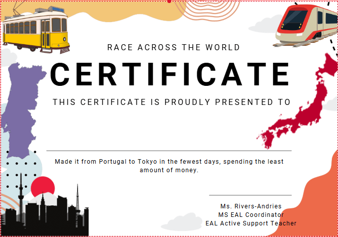 Each group planned their route, created a travel plan, and presented their journey to the class. Together, we decided on a winner and, much to everyone’s excitement, they received a certificate and medal!