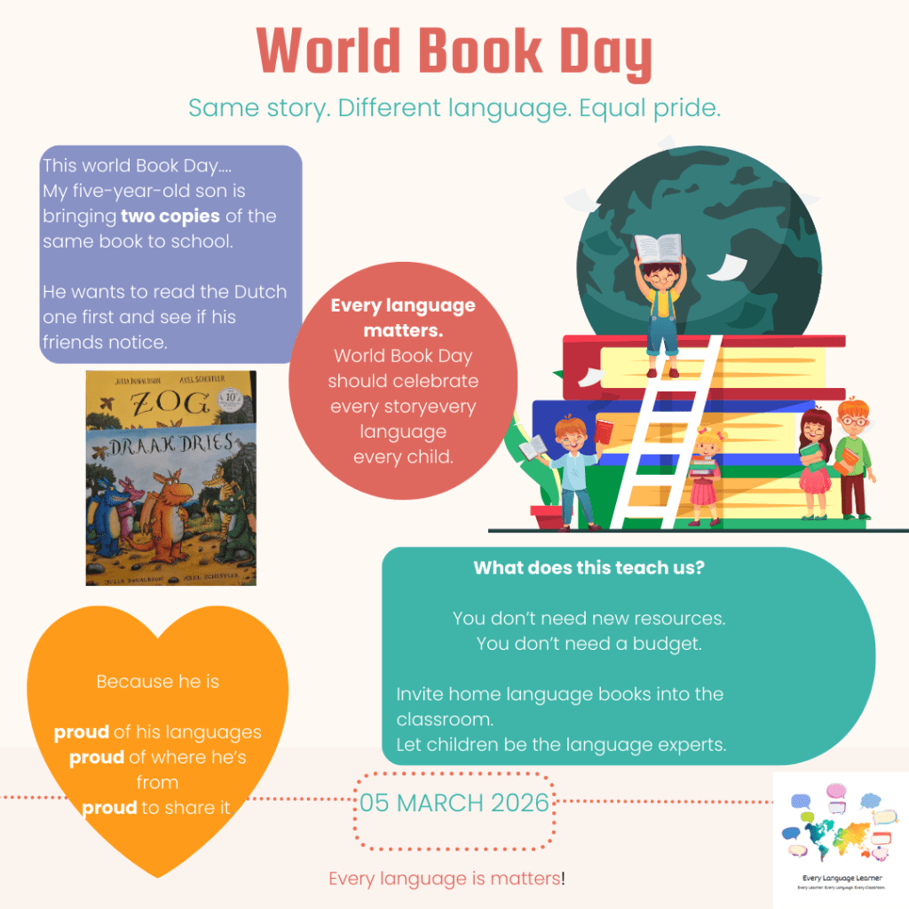 - Invite parents and carers to read in their home language during World Book Day.